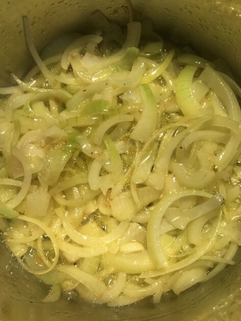 Smelt 25 g. smør i en gryde. Hak løgene groft og kom dem ved. Drys med salt og steg ved høj varme til løgene tager farve. Tilføj 1 dl vand og steg videre ved lav varme til løgene er karamelliseret.
