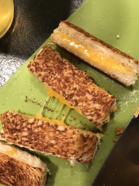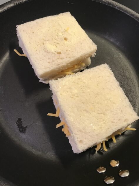 Skær kanterne af toastbrødet (gem kanterne). Smør alle skiver brød med smør på begge sider og kom ost imellem. Steg på en tør pande til de er gyldne på begge sider.