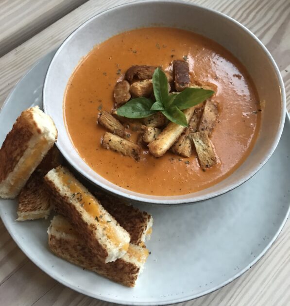 Spicy tomatsuppe med grilled cheese sticks