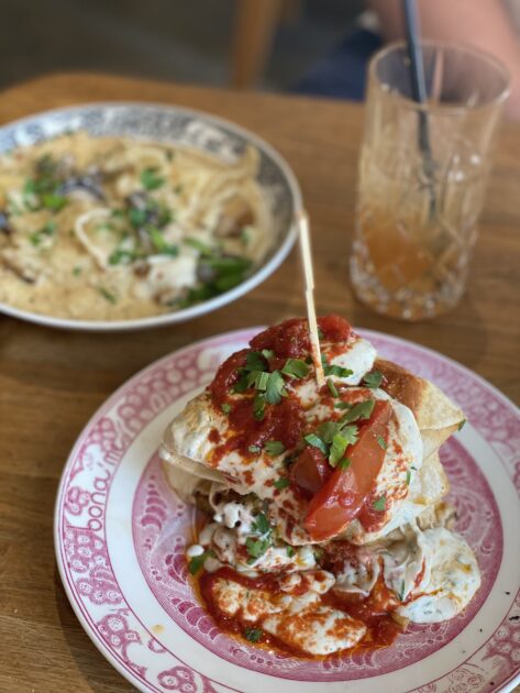 – de laver vanvittigt gode pizzaer og pastaen er også super god. Vi fik trøffel pizza og tortellini med parmaskinke og det var SÅ godt!